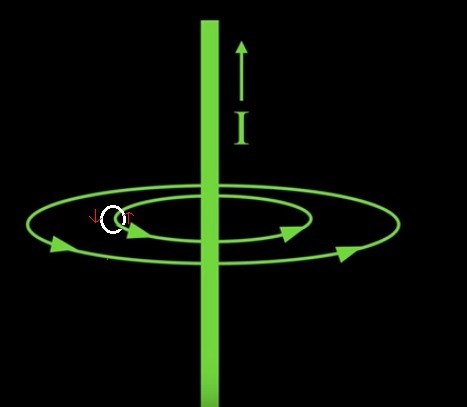 Jag har lite svårt att få en bild av hur det skulle se ut i ett om en laddad partikel skulle röra sig i en cirkelformad bana i ett magnetfält. Kan de göra det även i magnetfält från en ledare?