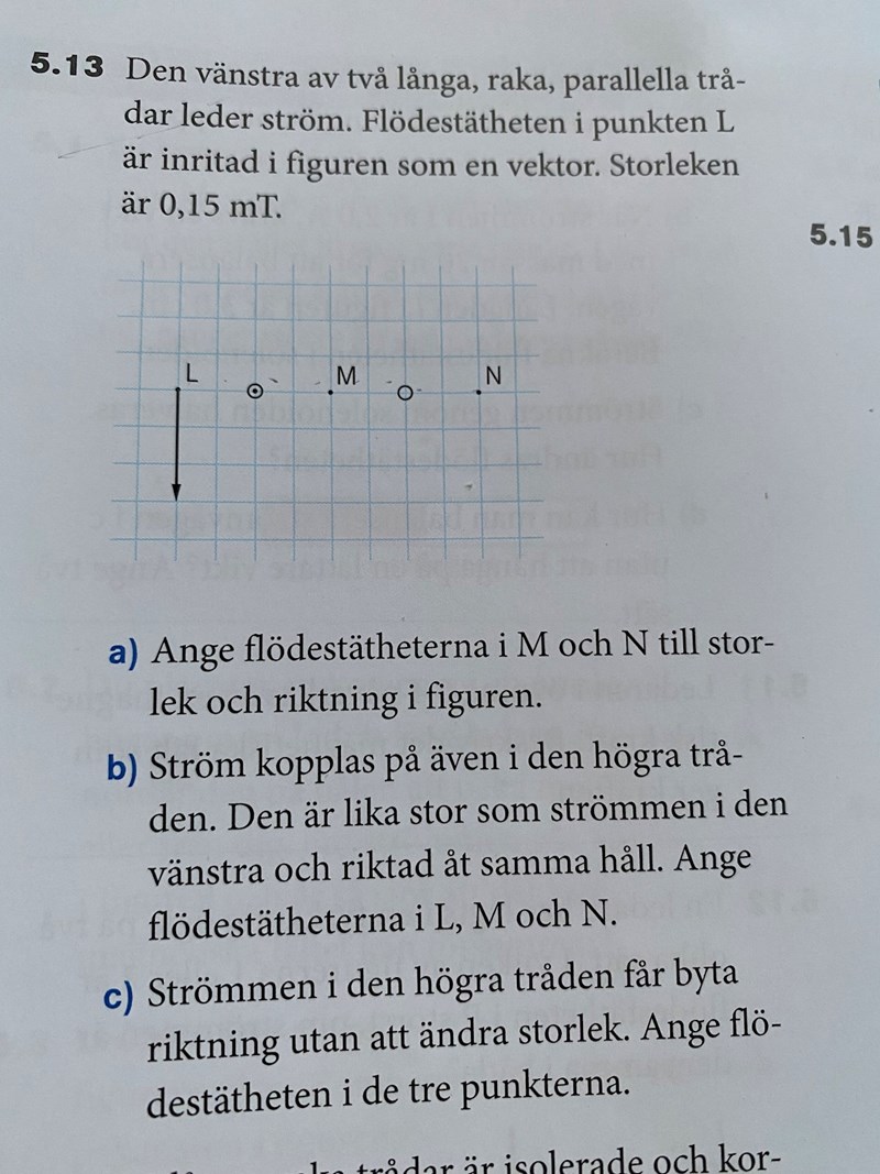 I c-uppgiften skall du beräkna flödestätheten i punkterna L, M och N. Vilken av dem var det som hade värdet 0,45 enligt dina beräkningar?