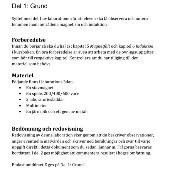 - 2a) Varför innebär ett högre varvtal mer ström i spolen och att ett starkare magnetfält bildas?