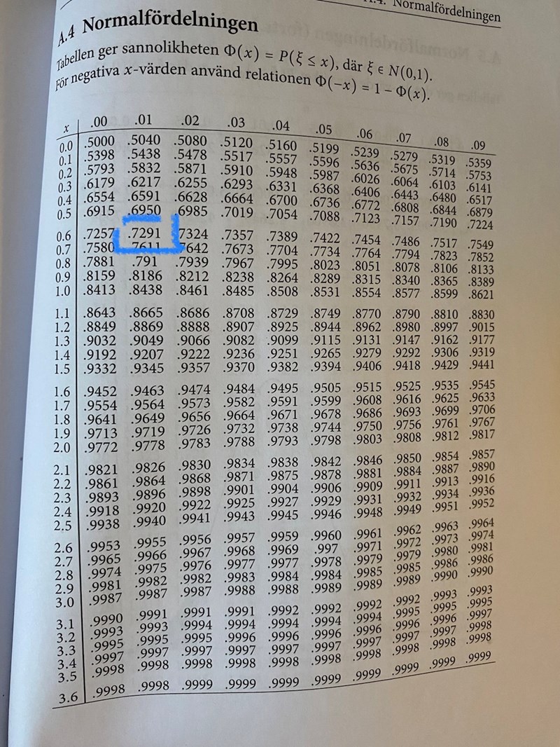 Hmm, utgår från min boks normalfördelningstabell (Matematisk Statistik, Kerstin Vännman, Adam Jonsson, Tredje upplagan). Tabellen tar ju endast så många decimaler så det blir ju avrundat. Kan man göra motsvarande beräkning på miniräknaren? (Har en TI-82 STATS)