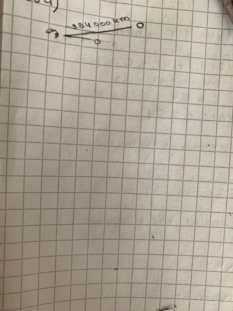 Om man tittar på en enkrona på 2,8 meters håll verkar den vara ungefär lika stor som fullmånen. Månens avstånd till jorden är 384 000 km. Beräkna med hjälp av dessa uppgifter månens diameter. En enkrona har diametern 25 mm.