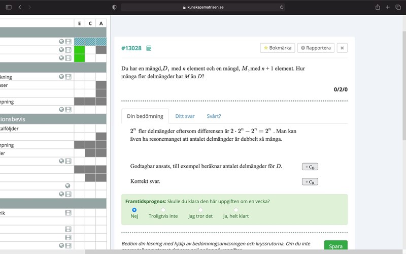 Du behöver veta hur man räknar ut antalet olika delmängder för en mängd med n element.