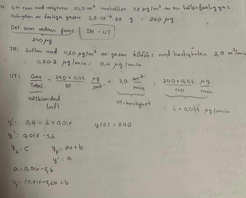 T.ex. när du beräknar UT får du inte räkna med gas. Efter t minuter har du mindre gas i rummet eftersom en del av den redan har lämnat rummet.