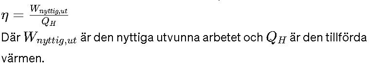 Vi använder formeln för verkningsgrad () för en värmemotor: