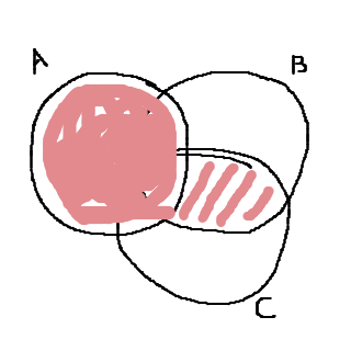 Hmm, den enda bit av B och C som är gemensam är . Om vi nu tänker oss att vi börjar låta C glida in i B:
