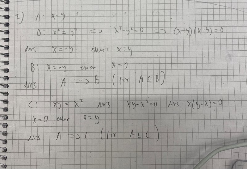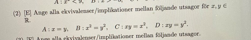 Börja med A, att x = y. Kan man dra någon av de andra slutsatserna från A?