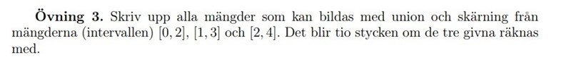 Utifrån detta får jag rätt svar när jag ska hitta mängderna för skärningarna men inte för unionerna! Hur har jag tänkt fel? Jag fattar verkligen inte hur skärningen mellan alla kan vara tomma mängden, alla mängder innehåller väl 2?