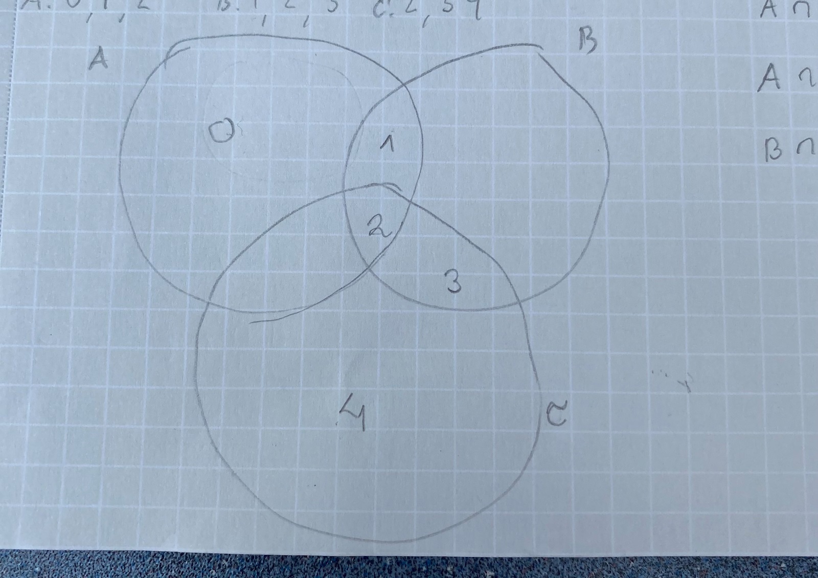 Så att A={0,1,2} B={1,2,3} C={2,3,4}