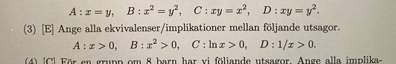 Hej! Varför är inte A ekvivalent med B? För B kan ju skrivas som x>0?