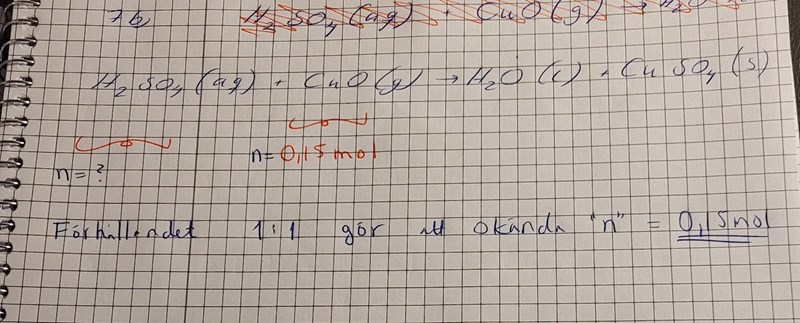 Är reaktionsformeln rätt och är hela uppgiften rätt på b)?