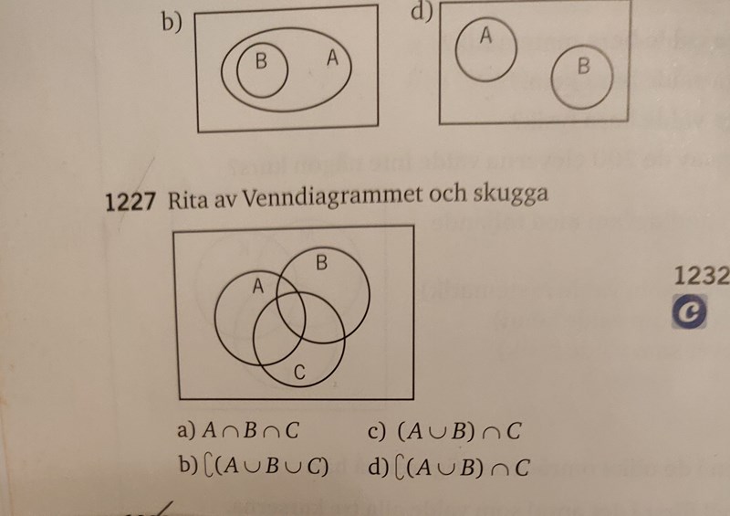 Jag förstår det du beskrivit ovan. Däremot kan jag inte lösa 1227 c eftersom jag fortfarande inte förstå skillnaden på uppgift c och d. Vad händer om jag lägger till eller ta bort komplementet?