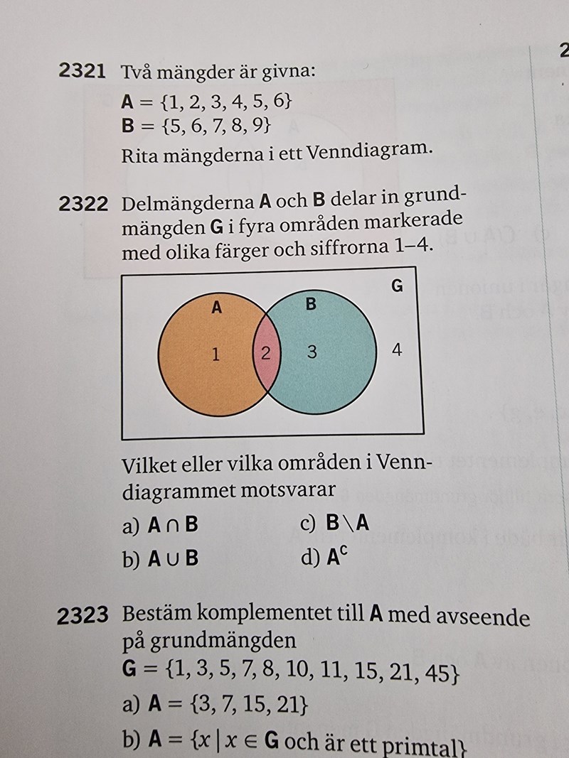 Om mängden A={1,2} och mängden B={2,3} och grundmängden G={4}