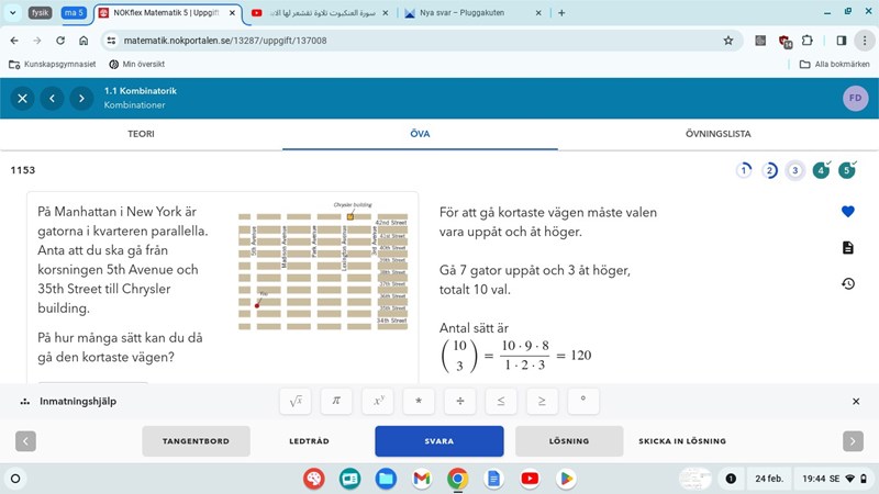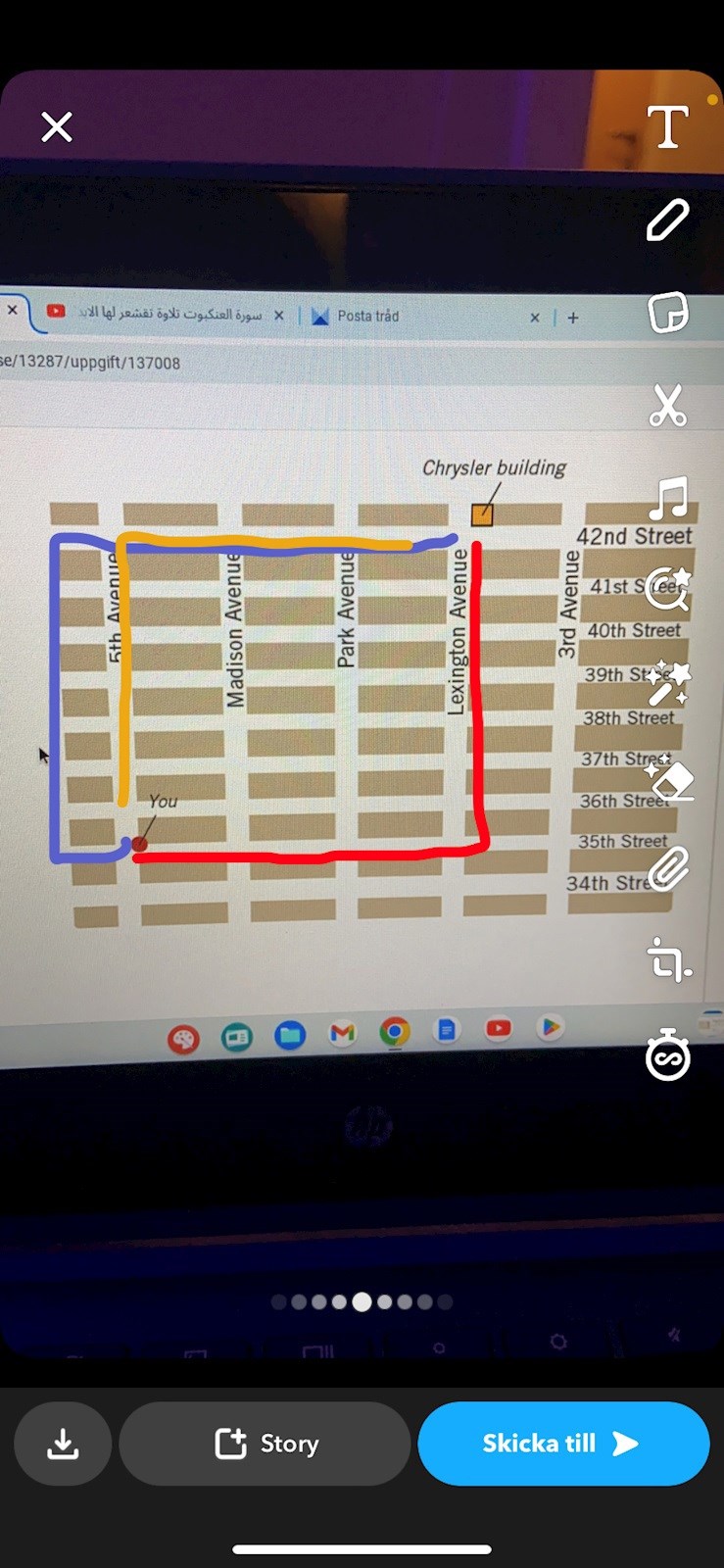Hej, jag förstår att han har totalt 10 val men ang 3an de fick? beror den på att han har tre sätt att gå till Chrysler building (kolla min bild)