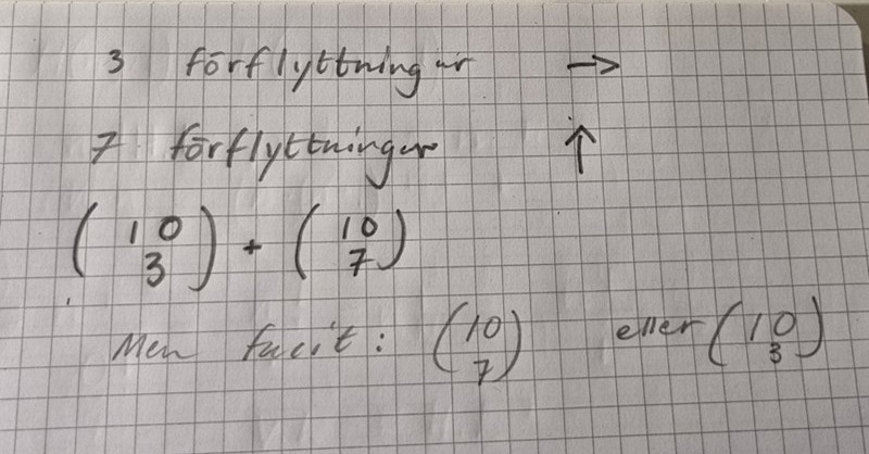 Jag tror Smaragdalena menar 7 steg uppåt och 3 steg åt höger, men hänger du med på hennes resonemang annars?
