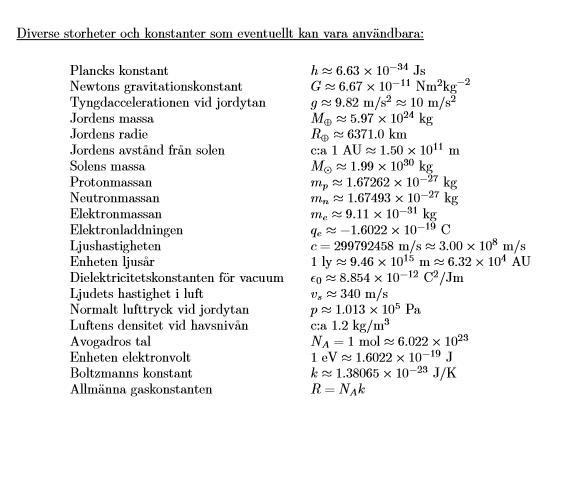 Dr. G skrev :Har man tillgång till några hjälpmedel? Jag tänkter spontant på värden på solens massa och gravitationskonstanten G.