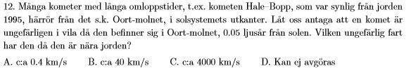 MaoFy provet - Komets hastighet - fråga 12 (2013)
