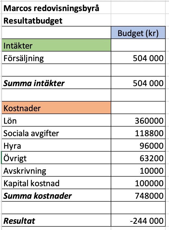 2a) Gör en resultatbudget för Marcos revisionsbyrå.