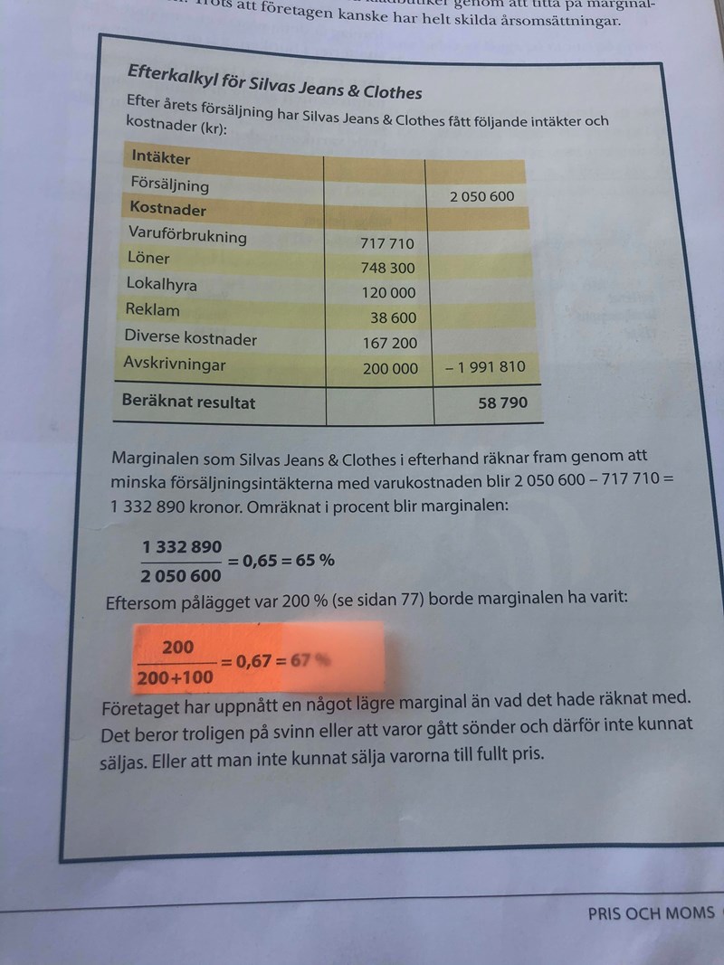 joculator och smaragdalena saknar grundläggande kunskap och erfarenhet av företags-ekonomi. Själv har jag mångårig proffesionell erfarenhet av kalkyl-arbete på företag. Jag avstår från att fortsättningsvis bemöta era felaktiga inlägg med långa förklaringar. Mitt fokus ligger på eleven