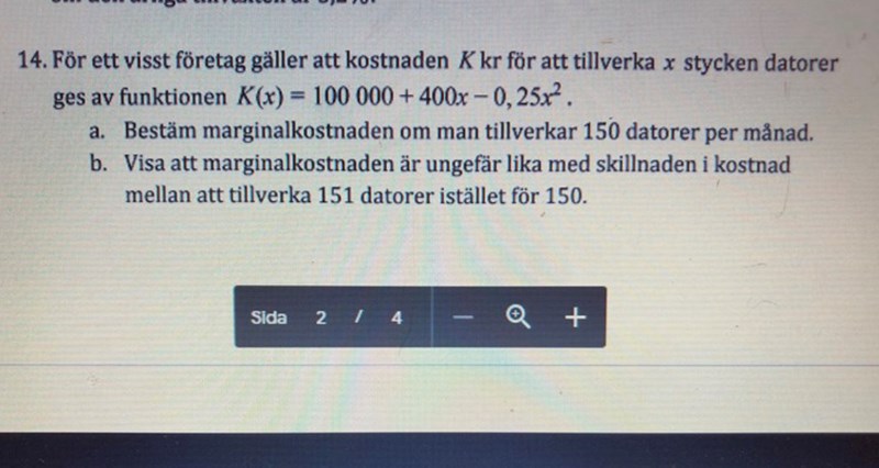 När ekonomer säger ”marginal” så menar de derivatan. Marginalkostnaden är således derivatan av kostnaden.