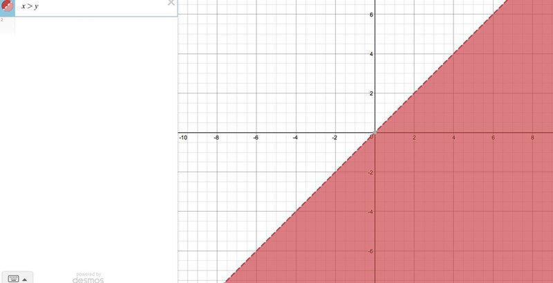 När jag ritade upp x > y ( Re z > Im z) så ser det ut såhär