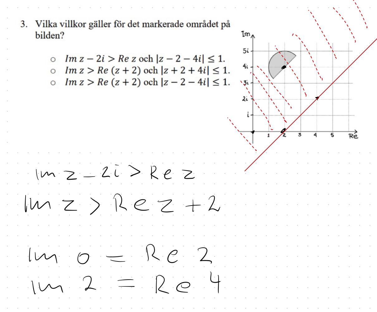 Om jag flyttar över så jag får Im Z > Re z + 2 och lägger in