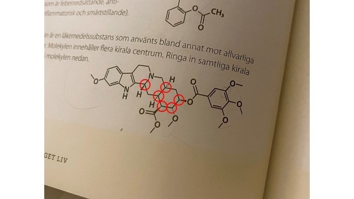 Hejhej! Har förstått de andra uppgifterna angående markering av kirala kol, men fastande på denna. Vet att ett kiralt kol måste vara bundet till 4 olika grupper. Men här är det så många atomer att jag bara blir förvirrad! Ifall någon kommer på svaret så vill jag gärna ha förklaringen bakom hur man ska tänka.