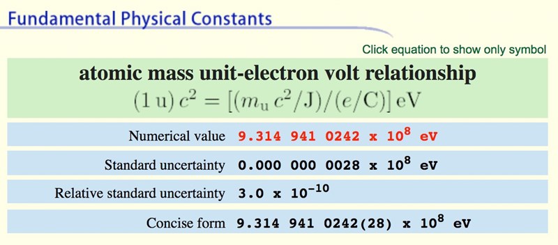 istället för att omvandla u -> kg -> J (via mc^2) -> eV -> MeV eller hur man nu hade tänkt göra.