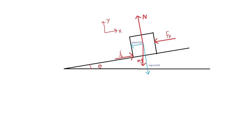 Massa som skjuts mha. en fjäder nerför en ramp:Hur stor är kraften från fjädern