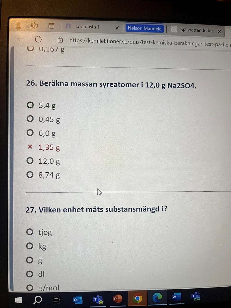 Vi har 0,08448 mol natriumsulfat. Det finns 4 syreatomer i varje natriumsulfat. Molmassan för syre är 15,9994 g/mol. Kommer du vidare?