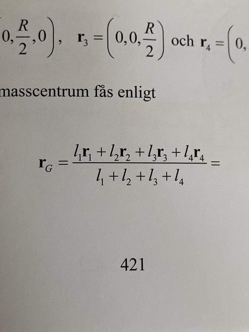 får jag passa på att fråga om samma fråga, där räknar dom ut det totala masscentrumet genom: