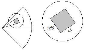 Det handlar alltså bara om att bestämma areaelementet. Studera nedan figur: