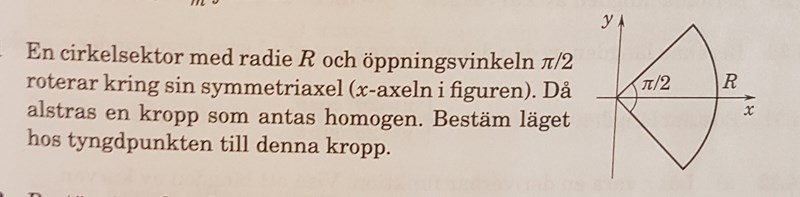 Ebola skrev:TobbeR skrev:Varför anser ni att vi skulle få samma masscentrum för rotationskroppen som för den 2-dimensionella figuren? Masscentrum för en kon och triangel är ju inte samma t.ex.