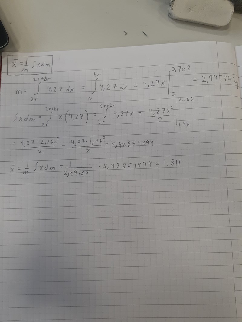 Bestäm den rektangulära plattans tyngdpunkt i x-led om dess ytdensitet varierar i x-led enligt σr = 4,27 kg/m²·x kg/m2.