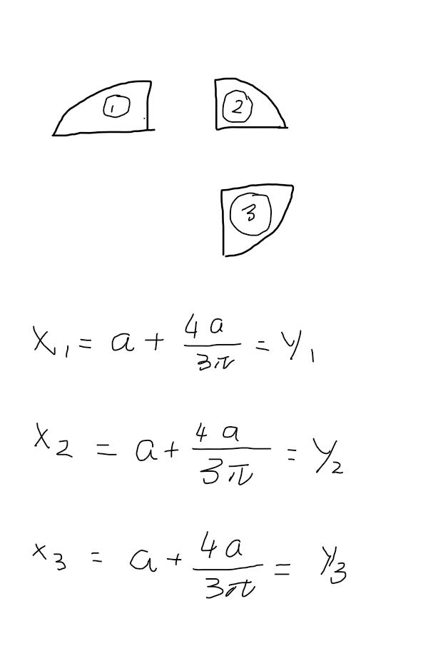 Rita upp masscentrum för var och en av de tre kvartscirklarna! Var ligger deras gemensamma masscentrum?