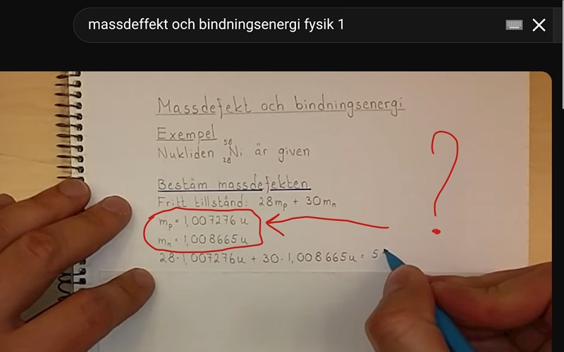 Jag kollar på den här videon om Massdefekt och bindningsenergi,