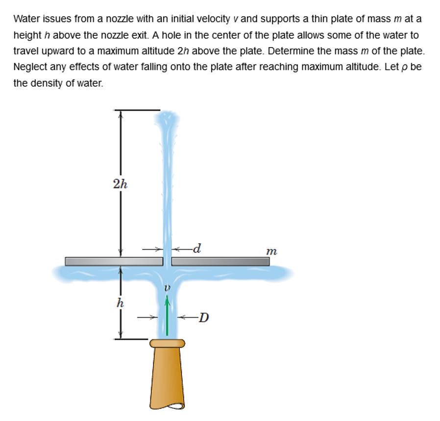 Men då jag antar att massan m svävar i luften, är accelerationen 0 och således gäller där F är kraften som uppkommer då vattenmassan ständigt "kolliderar" med m.