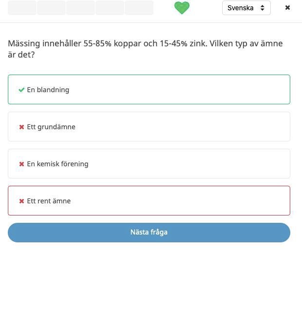 Mässing innehåller 55-85% koppar och 15-45% zink. Vilket typ av ämne är det?