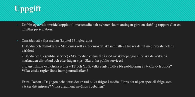 Massmedia inlämningsuppgift (Hjälp med ämne)