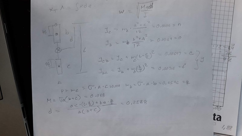 där r är avståndet från masscentrum till rotationsaxeln och I är masströghetsmomentet. Det jag har problem med är att räkna ut masströghetsmomentet för pendeln.