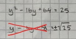y2-16y+64 = 25 Subtrahera 25 på båda sidor