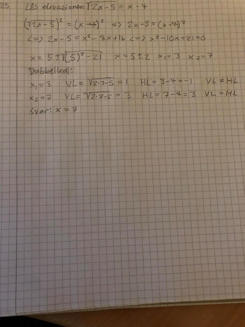Jag vet, men jag undrar om man måste dubbelkolla varje problem? För först skrev jag x = 3 och x = 7 men det blev fel så jag var tvungen att dubbelkolla
