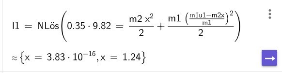 Jag har tagit reda på vilken hastighet kulan har precis innan stöten (sqrt(0.7g/0.5) m/s