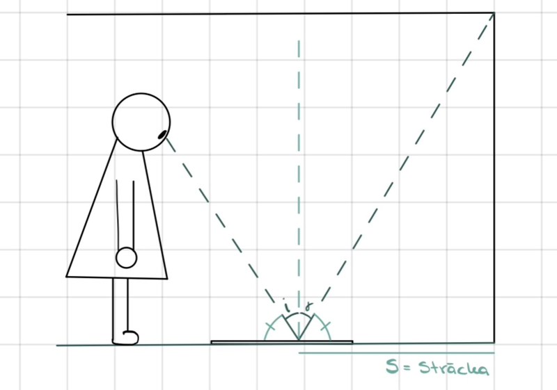 Det som jag har svårt med är hur ska jag "hitta/se" vinkeln på spegeln när den reflekterar takhöjden (är medveten att 0°< v < 180° ).
