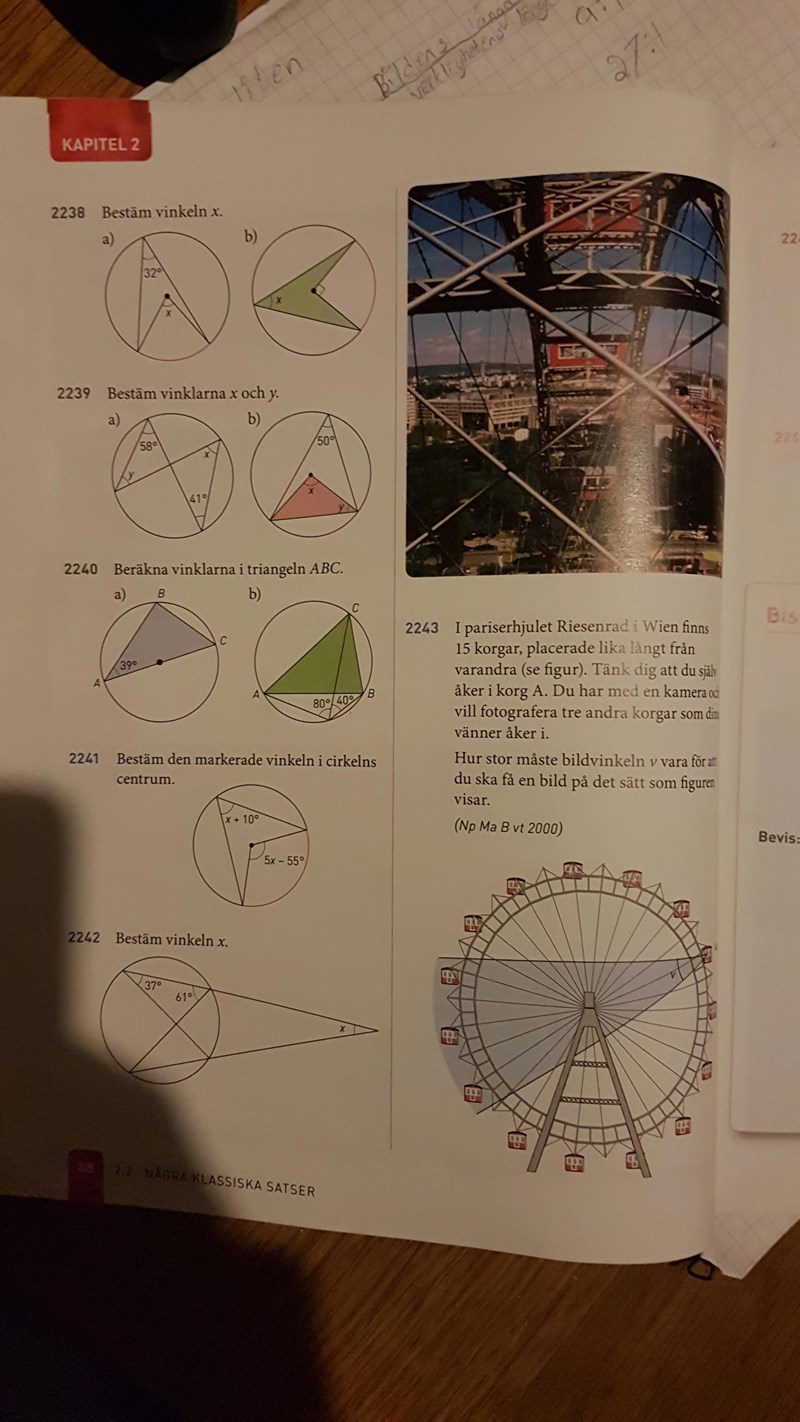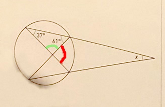 37 vinkeln och 61 vinkeln ska finnas i den andra triangeln under också då de är på samma cirkelbåge men förstår inte hur det kan hjälpa mig förutom det jag skrev ovan
