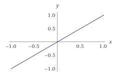 y=x har grafen nedan där fönstret är begränsat mellan värden -1 och 1