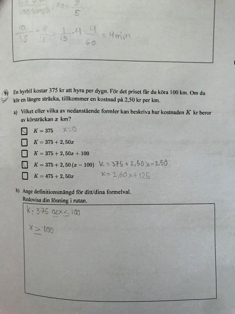 Om jag hyr bilen och kör 50 km, hur mycket skulle jag då betala enligt formel 2? Hur mycket skulle jag betala i verkligheten?