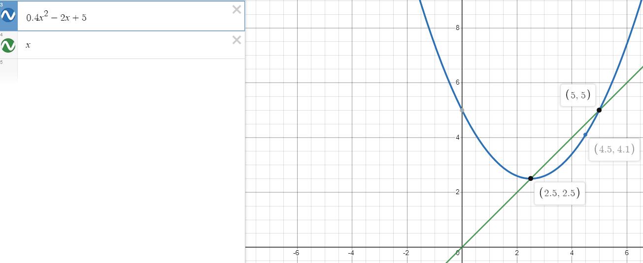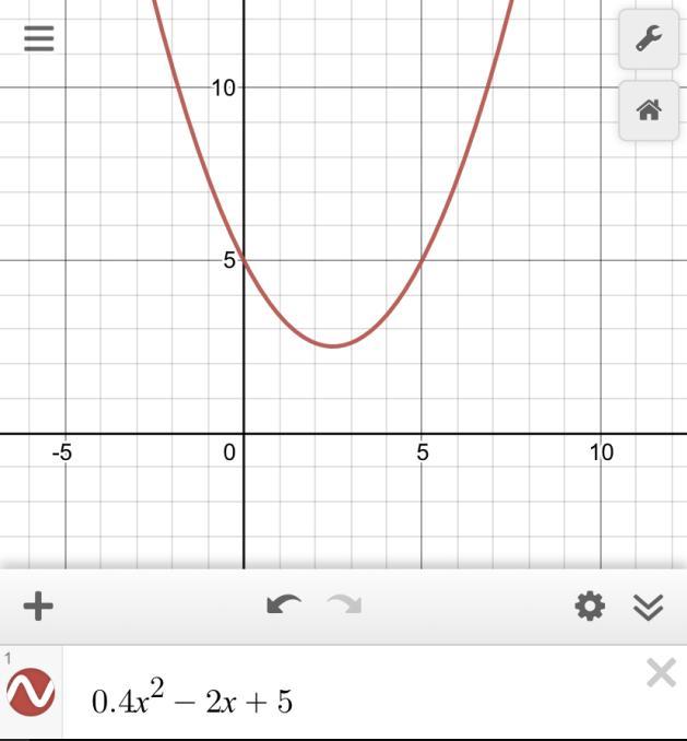 y = 0,4x2 - 2x + 5 vilket stämmer överens vid test.