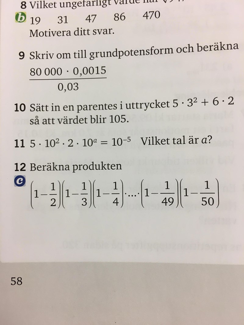 ber om hjälp i uppgift 12 , ingen miniräknare får användas.