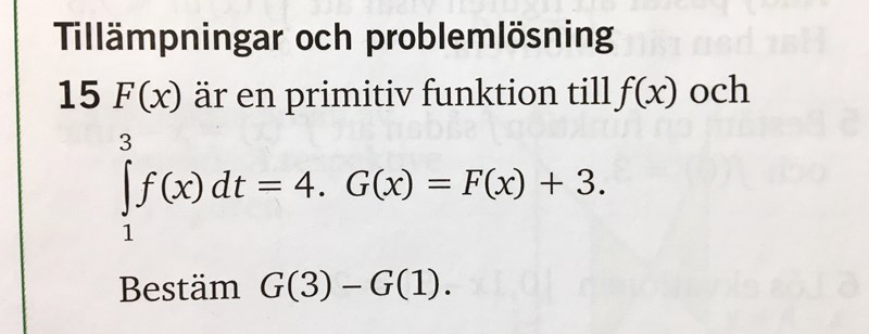 Så här borde man kunna lösa uppgiften då: G(3)-G(1) = F(3)+3-(F(1)+3) = F(3)+3-F(1)-3 =