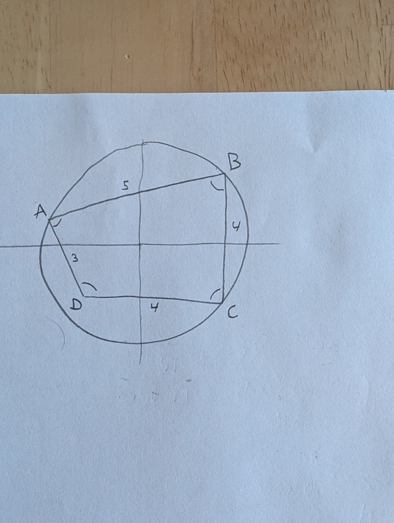 Börja med att rita en cirkel och en ungefärlig fyrhörning inskriven i den, enligt uppgiften.